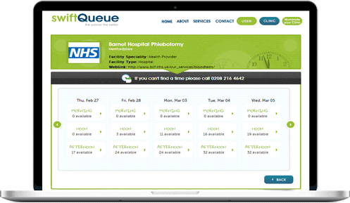 Swiftqueue is a Cloud based SaaS platform built on proven mobile and internet technologies. Allowing clinics to communicate available appointments for patients to manage their next visit online and improve communication flow while delivering operational excellence and improved efficiencies.
